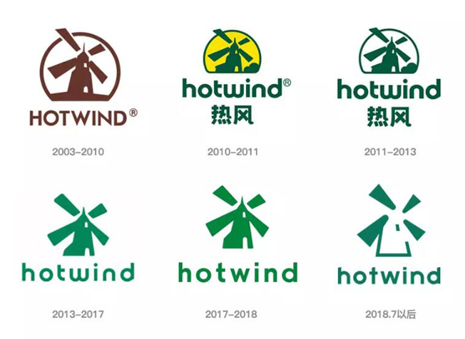 最新的LOGO繼續(xù)保留了風車圖形,但相比前面的五個版本,此次調整對圖形的優(yōu)化幅度最大。可以從下面的歷史演變中看出,從2003年推出風車形象后,幾次調整的過程均圍繞此形象進行,其中2010年至2013年這段時間還增加了黃色的背景配色,風車的左右增加了一些裝飾元素。