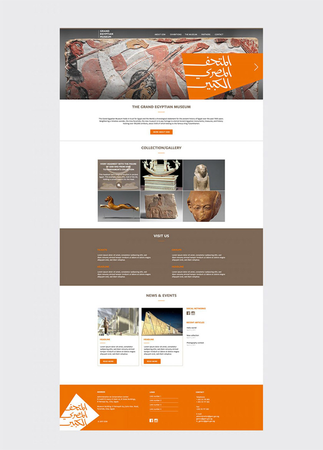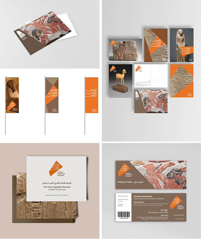 其LOGO的設(shè)計靈感來自大埃及博物館建筑的俯視圖,圖形內(nèi)部是經(jīng)過定制的“大埃及博物館”阿拉伯書法字體。