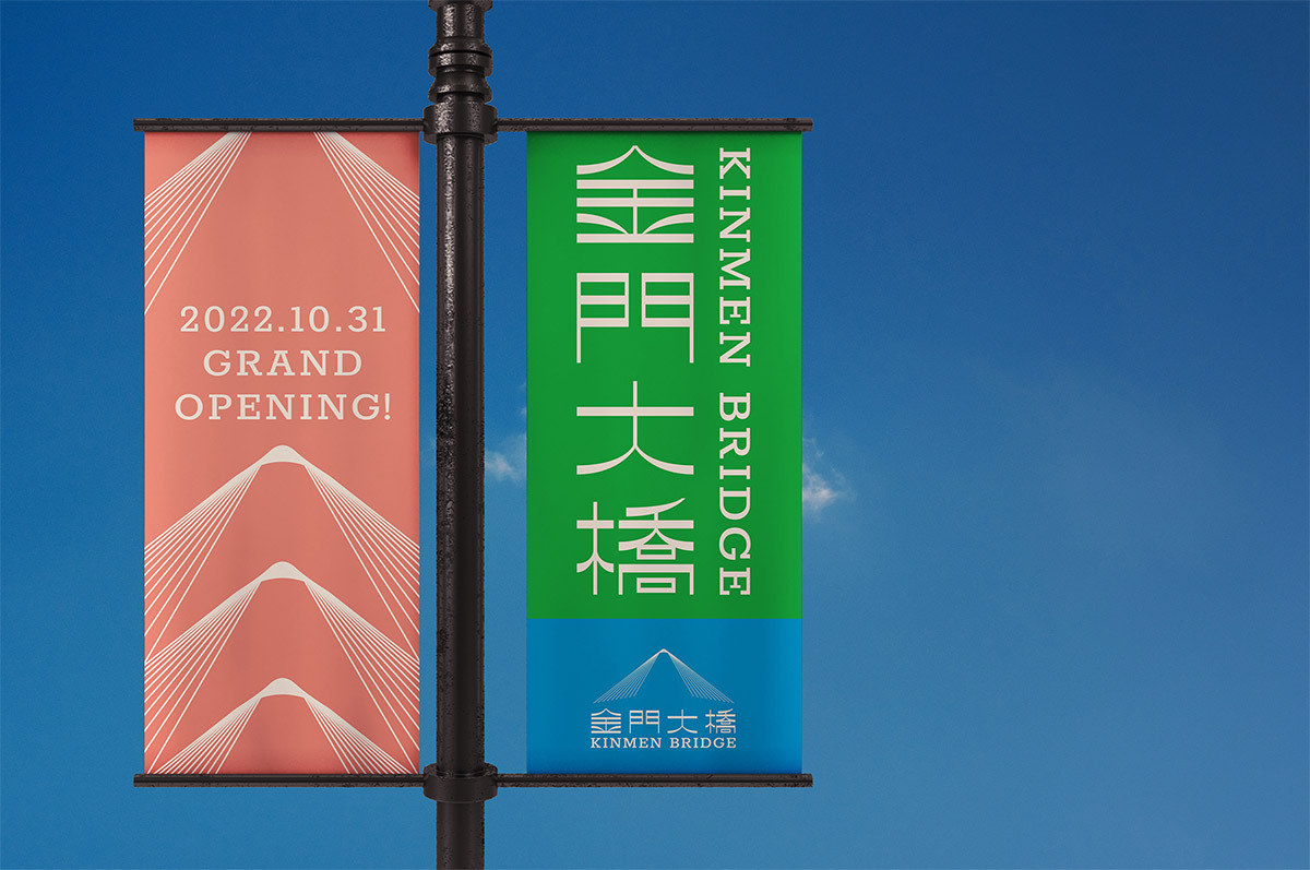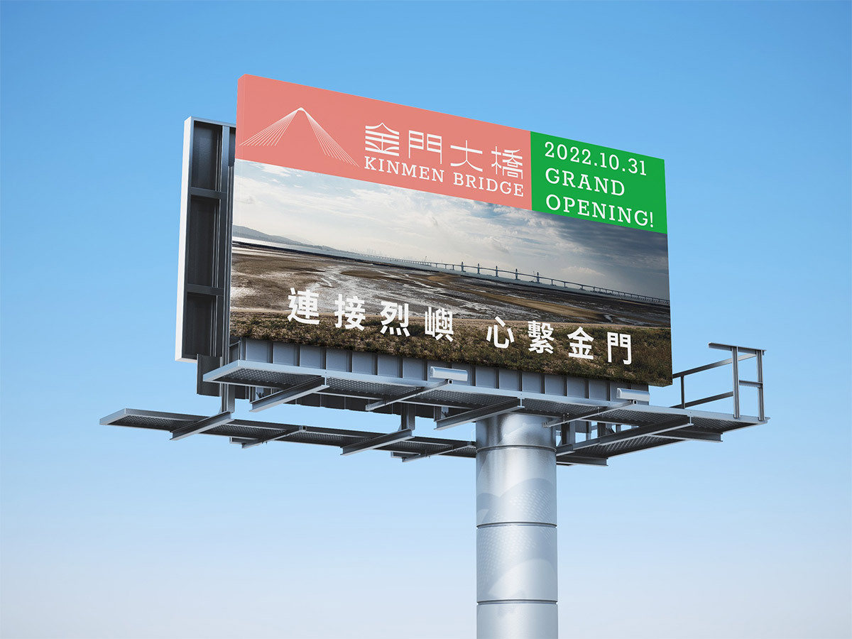 標志當中隱含著多個指向上方的箭頭,借此表現(xiàn)金門和烈?guī)Z透過各種觀光、生活資源整合,不斷向上提升進步的未來性。據(jù)設計公司介紹,大橋的主視覺形象設計將在大橋未來的相關(guān)通車活動之視覺形象或是觀光相關(guān)商業(yè)禮贈品,能有更現(xiàn)代、更標準化的妥善規(guī)范。