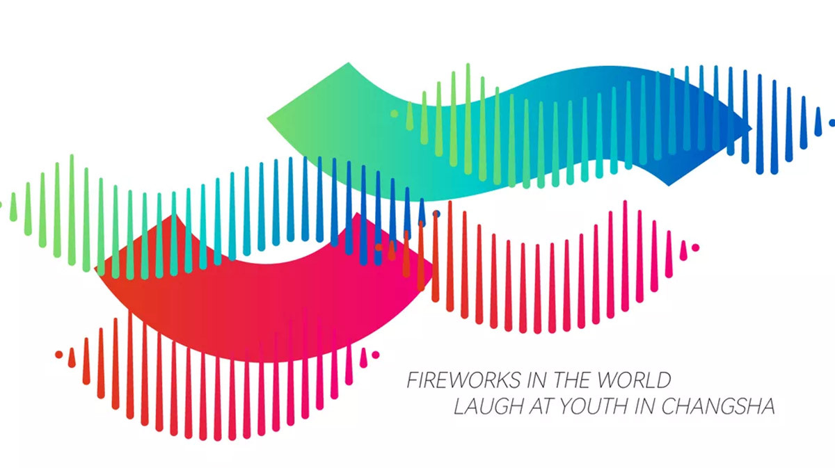從LOGO不僅可以直觀地看到一個(gè)有點(diǎn)俏皮的笑臉符號(hào),而且將圖形順時(shí)針旋轉(zhuǎn)90℃,還可以找到長沙的首字母CS。上面彎曲的藍(lán)綠色S曲線應(yīng)該也有表達(dá)長沙橘子洲的長條形態(tài)的意思。