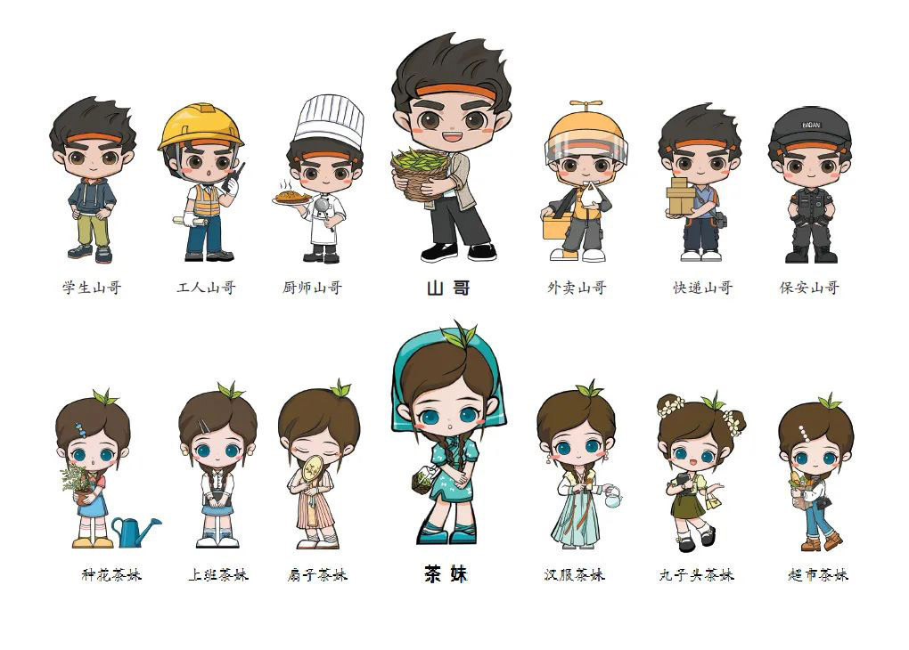「山哥」勤勞勇敢、熱愛(ài)生活、樸實(shí)陽(yáng)剛,「茶妹」聰明內(nèi)斂、可愛(ài)靈動(dòng)、善良純真,充分展現(xiàn)了千千萬(wàn)萬(wàn)信陽(yáng)人民的美好品質(zhì)。在形象設(shè)計(jì)上,匯集了老區(qū)紅、生態(tài)綠、茶葉青等色彩鮮明的信陽(yáng)元素,彰顯了獨(dú)具匠心、別具一格的地域特色。