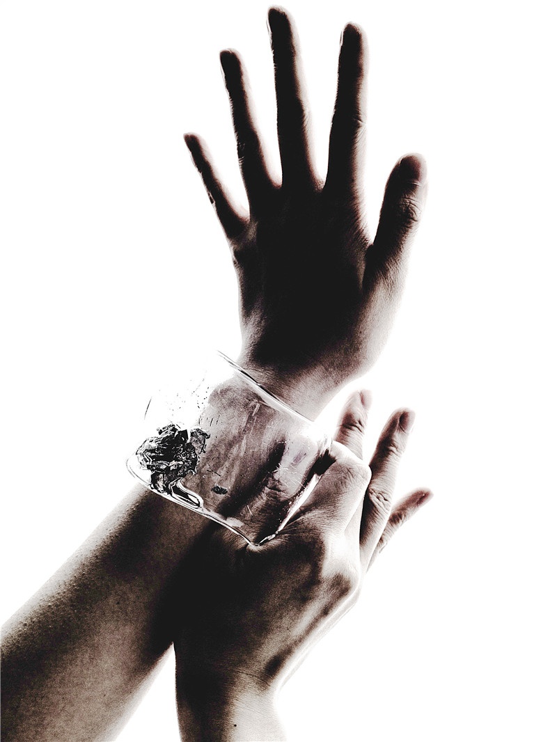 與此相反,陳可茵的“情感珠寶”(Emotional Jewellery)和張周捷的“數(shù)字容器”(Digital Vessel)則融入數(shù)字技術(shù)。對(duì)于前者,其所采用的鎵和鉍材質(zhì)使得珠寶能夠隨著佩戴者的體溫變化而改變形狀,將穩(wěn)定的一致性轉(zhuǎn)變?yōu)楣采l(fā)展的形態(tài),對(duì)時(shí)間和未來(lái)開(kāi)放;對(duì)于后者,張周捷近年來(lái)則一直致力于研究3D打印,將之作為形式可能性的探索手段。