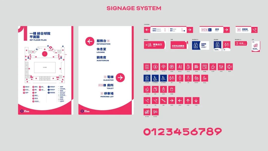 主視覺(jué)應(yīng)用發(fā)展五種圖形元素,加入螢光綠為輔助色,讓視覺(jué)更為活潑,并制作視覺(jué)形象動(dòng)畫,應(yīng)用在九個(gè)入口屏幕、館外的大型LED以及未來(lái)賽事記分板屏幕,打造豐富多元、充滿回憶與活力的形象。